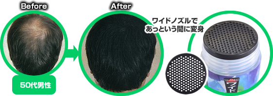 髪の薄い部分の頭皮と毛髪に付着して薄毛をカバーし、ふんわりとした、軽くて自然なボリューム感を得ることができます。髪を生やすのではなく、瞬時に髪が生えたように見せる、新しいスタイルの若返り増毛化粧方法です。本来の貴方の髪型にボリュームアップします。5年前、10年前の貴方の髪型に戻るので不自然さは無く、素早く低コストにて5年前、10年前の貴方に若返ります。